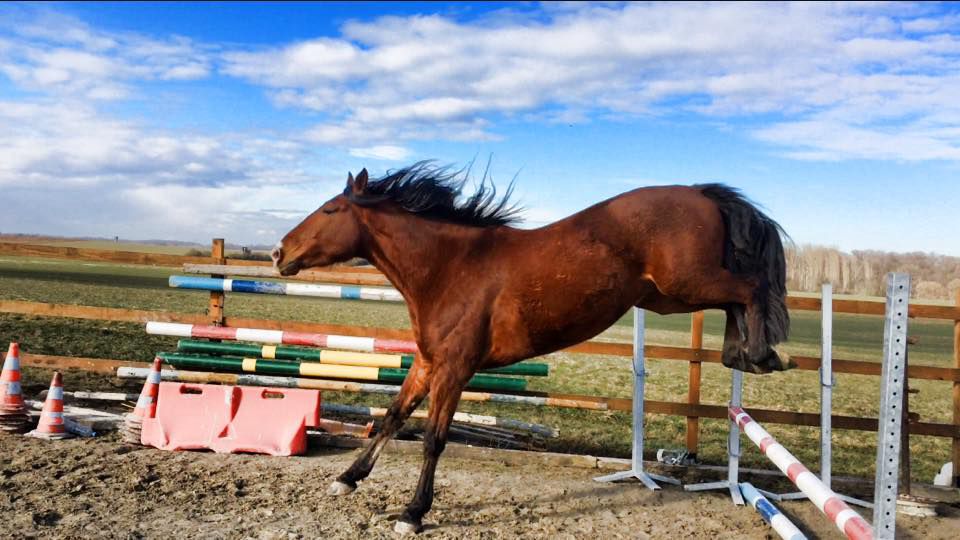 | Dire merci | @Airoso : J'adore sa bouille sur la seconde photo, il est super mignon ! De mon côté, on m'a menti, j'ai pas un ibérique de contrebande (comprendre, vague croisement ONC), mais un poney de CSO...On a travaillé un peu les déplacements latéraux puis je l'ai laissé jouer avec son copain une petite heure, et j'ai eu envie de lui mettre une barre en carrière pour voir. Bah monsieur y allait tout seul, y revenait, s'est éclaté comme un porc il a passé une barre au sol deux-trois fois pour voir, puis un croisillon, puis le petit verticale. Six sauts, dont un seul pour le verticale par contre, histoire de pas trop pousser alors qu'il avait bien bossé avant ![]() J'ai du mal à réaliser qu'il prendra cinq ans en avril, le temps passe trop vite Et j'ai l"'impression qu'il a encore grandi, en plus... Niiih, déjà qu'il est trop grand pour moi Il fait environ 1m65. Faudrait que je retoise, un jour.Tites photos du verticale. Dieu merci, il a perdu son ventre de poulinière, il n'aurait pas pu décoller sinon ![]() ![]() |