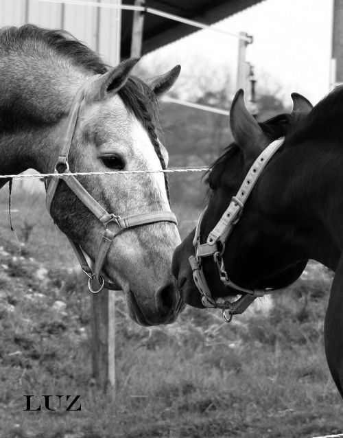 | Dire merci | A gauche le gris de 4 ans, à droite le bai de 3 ans![]() |