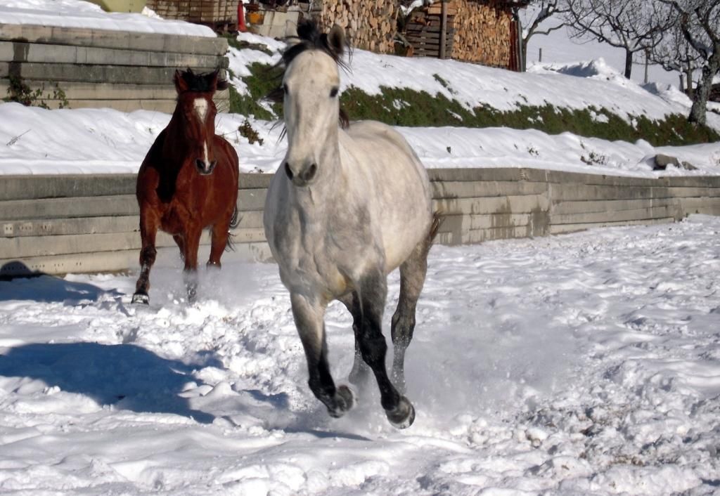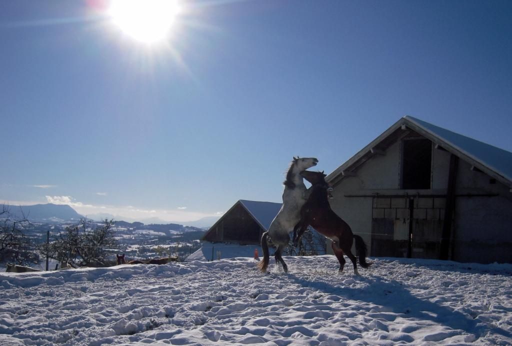Dire merci | oui, ça a un peu fondu hier mais ce matin -10 donc tout est gelé! mais ça ne m'empêche pas de lacher les fauves, ils adorent ça la neige! |