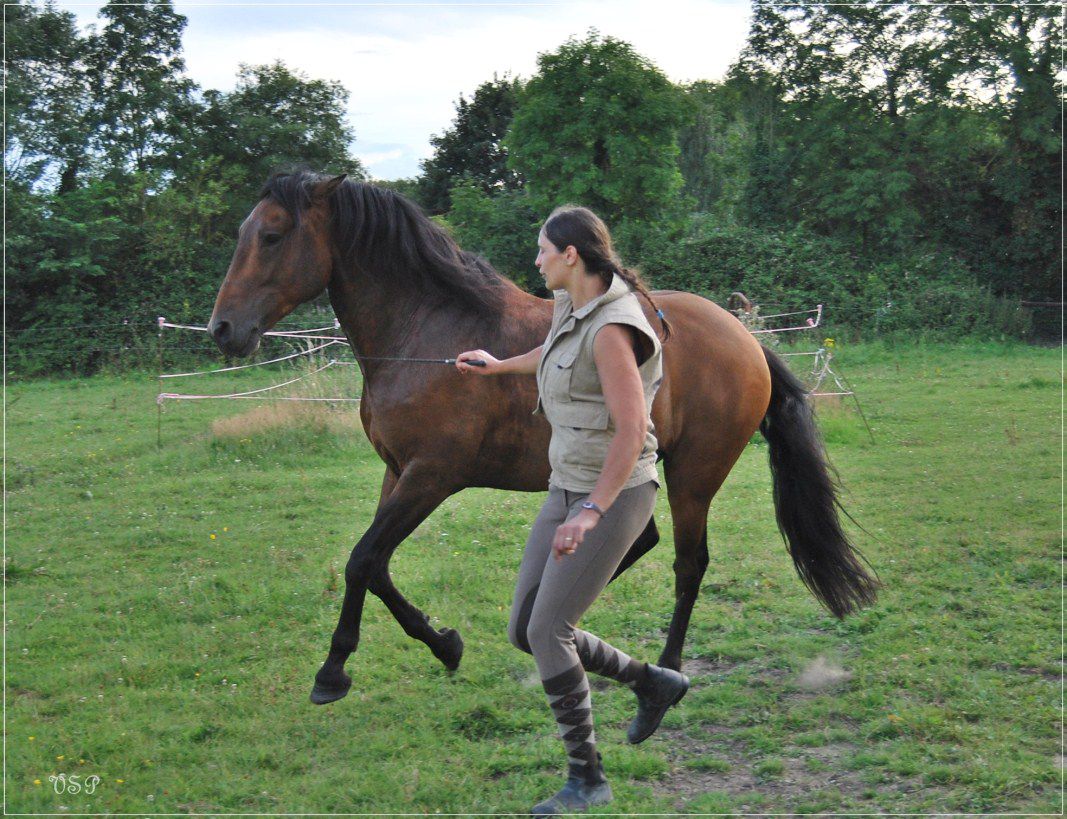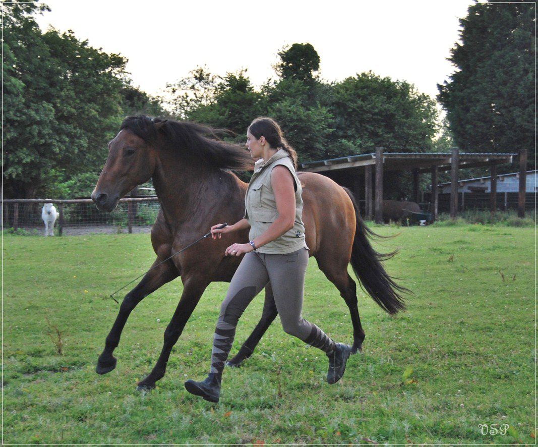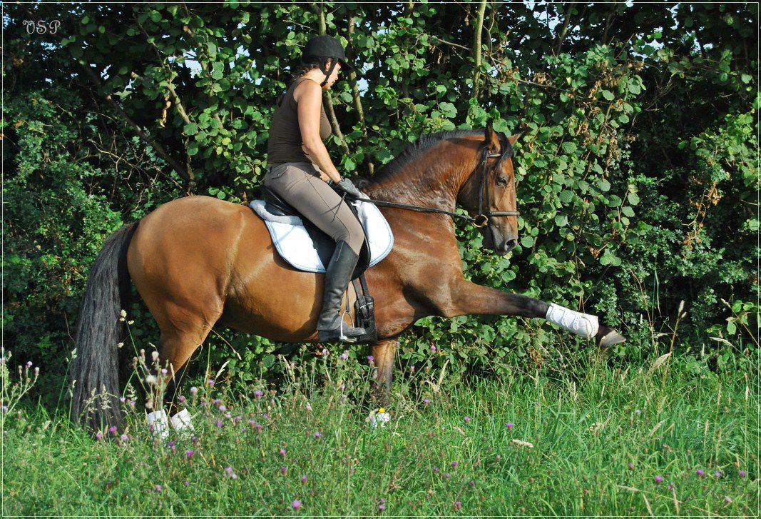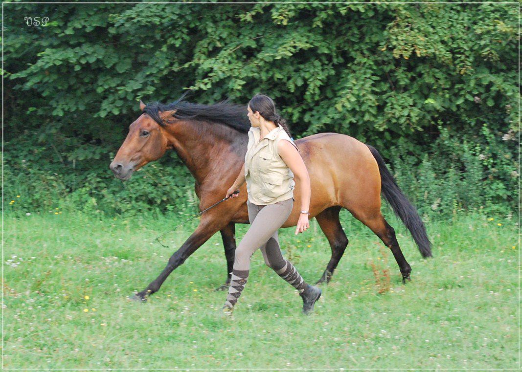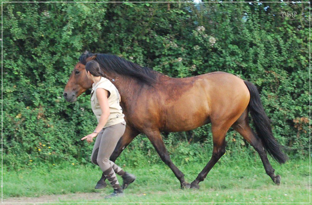 | Dire merci | Puis petite démonstration en liberté dans le grand pré avec U'Two en liberté qui faisait le zouave pas loin , on avait pas joué ainsi depuis mars/début avril à cause du mauvais temps qui perduré, et bien le loulou c'est montré adorable , à l'écoute , dommage les photos de la valse en liberté n'a pas été prise, ou du passage de la barre au sol quand je l'"envoie sauter seul , il est malgré son air "pas content "dans le jeu et ne me quitte pas alors qu'il pourrait me laisser en plan (il fait toujours cette tête mais il tient ça de sa mère apparemment assez caractérielle ) j'adore jouer ainsi avec lui ![]() ![]() un demi tour avec changement de main ![]() ![]() un arrêt ![]() à genou ![]() ![]() au galop ; M. aime bien prendre un peu d'avance ![]() ![]() je suis vraiment ravie de mon loulou il me permet d'évoluer et de prendre plaisir dans tout les domaines sans exception que ce soit à pied , en selle,en exterieur , en cso , en dressage il est à la fois complexe car émotif et très sanguin / vif et à la fois généreux , prêt à faire plaisir ![]() Message édité le 13/08/12 à 13:23 |