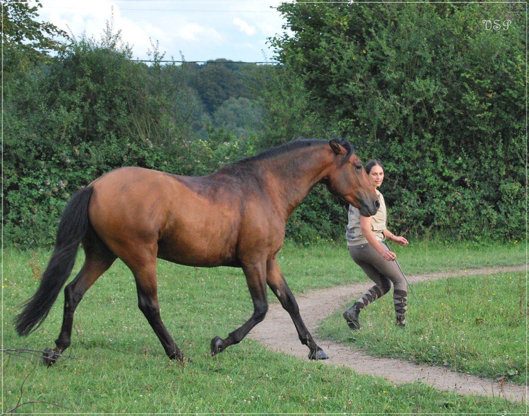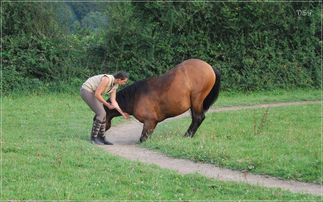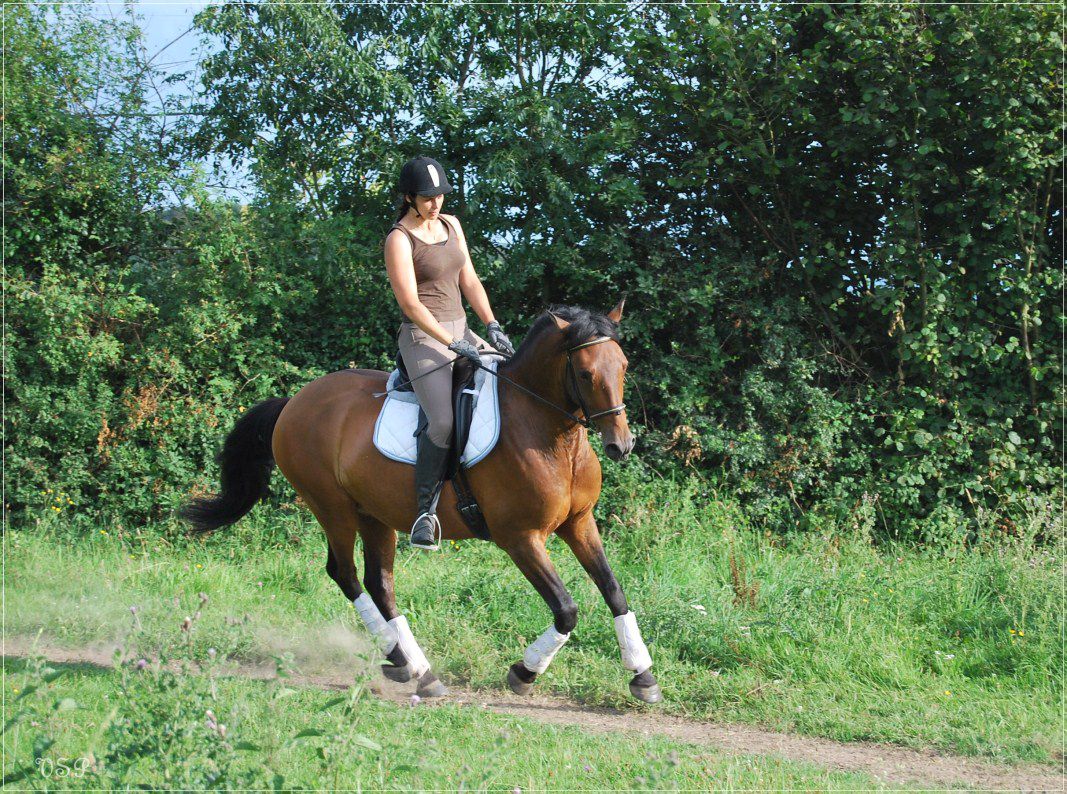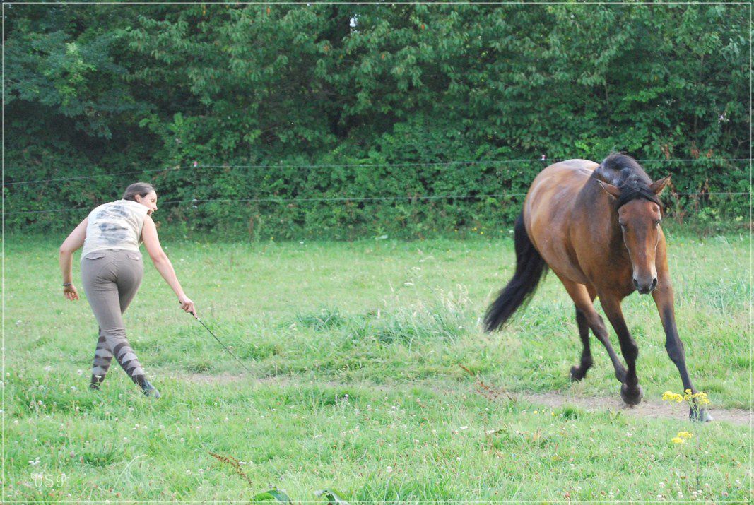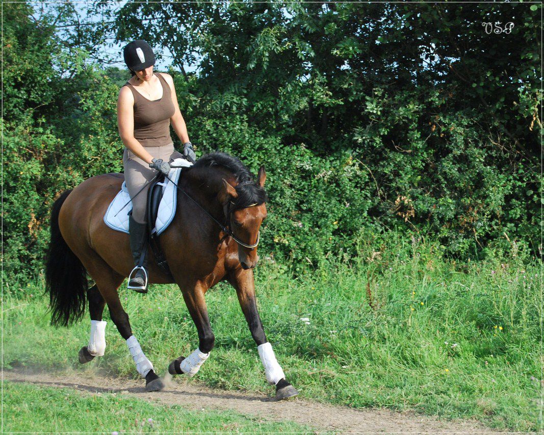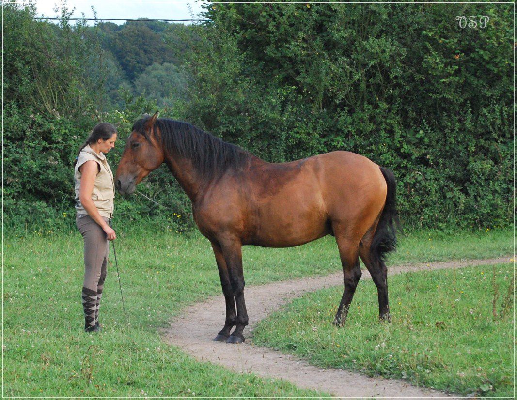 | Dire merci | Puis petite démonstration en liberté dans le grand pré avec U'Two en liberté qui faisait le zouave pas loin , on avait pas joué ainsi depuis mars/début avril à cause du mauvais temps qui perduré, et bien le loulou c'est montré adorable , à l'écoute , dommage les photos de la valse en liberté n'a pas été prise, ou du passage de la barre au sol quand je l'"envoie sauter seul , il est malgré son air "pas content "dans le jeu et ne me quitte pas alors qu'il pourrait me laisser en plan (il fait toujours cette tête mais il tient ça de sa mère apparemment assez caractérielle ) j'adore jouer ainsi avec lui ![]() ![]() un demi tour avec changement de main ![]() ![]() un arrêt ![]() à genou ![]() ![]() au galop ; M. aime bien prendre un peu d'avance ![]() ![]() je suis vraiment ravie de mon loulou il me permet d'évoluer et de prendre plaisir dans tout les domaines sans exception que ce soit à pied , en selle,en exterieur , en cso , en dressage il est à la fois complexe car émotif et très sanguin / vif et à la fois généreux , prêt à faire plaisir ![]() Message édité le 13/08/12 à 13:23 |