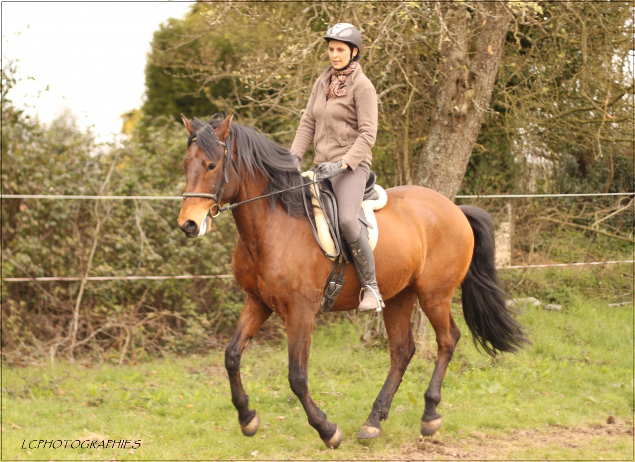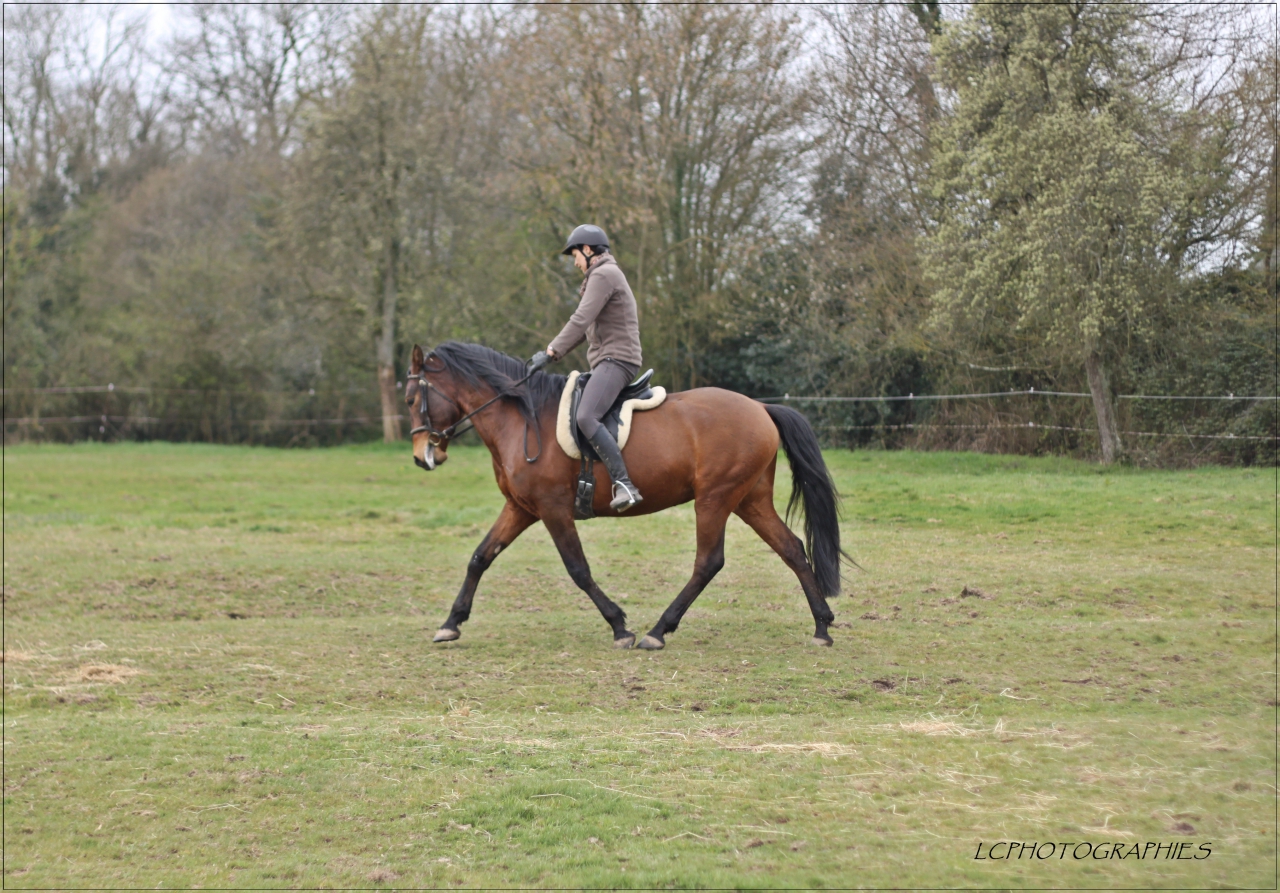 | Dire merci | merci ... je vous avoue que je n'aurais pas le temps de faire un post, je pense mettre des photos ici de temps en temps .... quand j'aurais des photos Pour le moment elle ne ressemble pas encore à grand chose ... elle a vidé son bide de vers ( bon appétit biensur) du cp elle a dégonflé , passe par des phases peu flatteuses et a le cul plus haut en ce moment ( coool elle grandit)Par contre elle a repris pas mal en seulement 2 semaines , je suis contente ! Elle progresse très très très bien. Je l'avais confié à un pro pour le debourrage car elle était très introvertie( elle l'est tjs d'ailleurs comme jument !) et avait tendance à cabrer ... une defense que je ne veux vraiment pas avoir à régler ![]() Du cp pr des questions de timing je l'ai confiée le temps de lui trouver une pension, avec pr consigne : mise en avant et mise en confiance. Au final il s'avère que le pro s'il me l'a pas loupé, a pas du tout travailler ça ... dc oui certes la jument accepte la selle et le cavalier mais au delà de ça ... pas de travail en profondeur. Il s'est contenté de la gentillesse de la jument... je suis très très déçue. Moralité de une j'aurais pu le faire et économiser de l'argent,mais surtout il y a une semaine je récupère ma jument désormais à 2km de chez moi et je décide de commencer doucement le travail de musculation par une séance de longe... Jument raide debout Mais raide debout, c'est à dire ben ... debout, demi tour debout à s'enrouler la longe autour du cou ![]() je me demande bien comment on peut travailler la mise en avant d'un cheval sans le longer .... mais bref . Du coup c'est bibi qui s'y colle .... tous les jours 30 min pas plus à surveiller la décontraction du pas et exiger une jument devant soi qui tient son cercle. Verdict : qq jours plus tard, elle me fait les transitions aux deux mains et prend le galop aux deux mains aussi ( elle galopait pas sur le cercle non plus à la base) Bref on recommence depuis le debut ... mais je suis vraiment et déçue et en colère après moi même concernant ce pro qui m'a été recommandé et avec qui j'ai longuement discuté avant de la lui confier. Biensur il a "débourré" mais on s'est vraiment pas compris quoi ![]() |