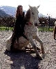 | Dire merci | Fantomette alors mon lulu ça fait 1 mois que je l'ai, il ne connaît pas trop la carrière donc en ce moment on y va molo (il vient d'avoir 5 ans et ça fait 4 mois qu'il est debourré, pour le moment ballade plaisir, peut être dressage en compet avec le temps ). Il vient directement du Portugal, il est plein papiers et son nom est Astro Do Cabo. Il toise 1m52, je ne sais pas si ca se voit beaucoup sur les photos mais il est trés carré, il n'a pas une arrière main trop longue (j'aime pas quand c'est long). Enfin bref, moi j'adore (c'est normal c'est le mien )Merci Medina, oui c'est vrai qu'il est typé sans avoir la tête trop busquée, ce qui me plaît beaucoup. Merci pour ces compliments ![]() |