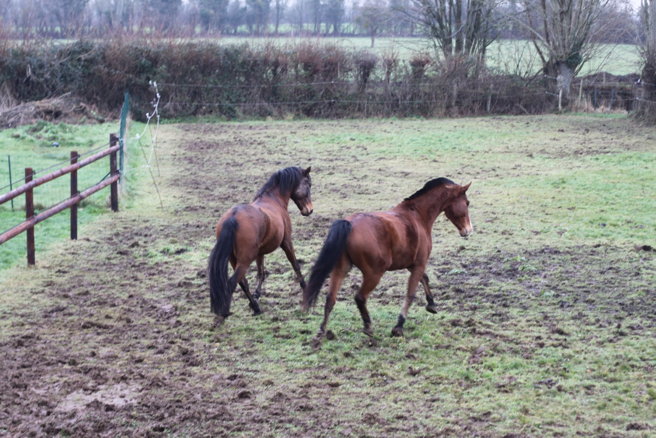 | Dire merci | Toujours aussi beaux vos loulous ! Akanto est splendide ! De mon côté, je vais les voir dans deux semaines, je ferais pleins de photos JengisKhan a encore grandit me dit-on mais il s'est un peu stabilisé ces derniers temps et essaie d'assembler toutes les parties de son corps Altaïr, quand à lui est de retour en box car il a fait un abcès. Mais il est chouchouté, sorti tous les jours au manège et il va bien ! On va lui commencer une cure d'Ekiflex pour renforcer ses pieds car il a les soles très moles. Ils me manquent mes deux asticots, j'ai hâte de les revoir ! |