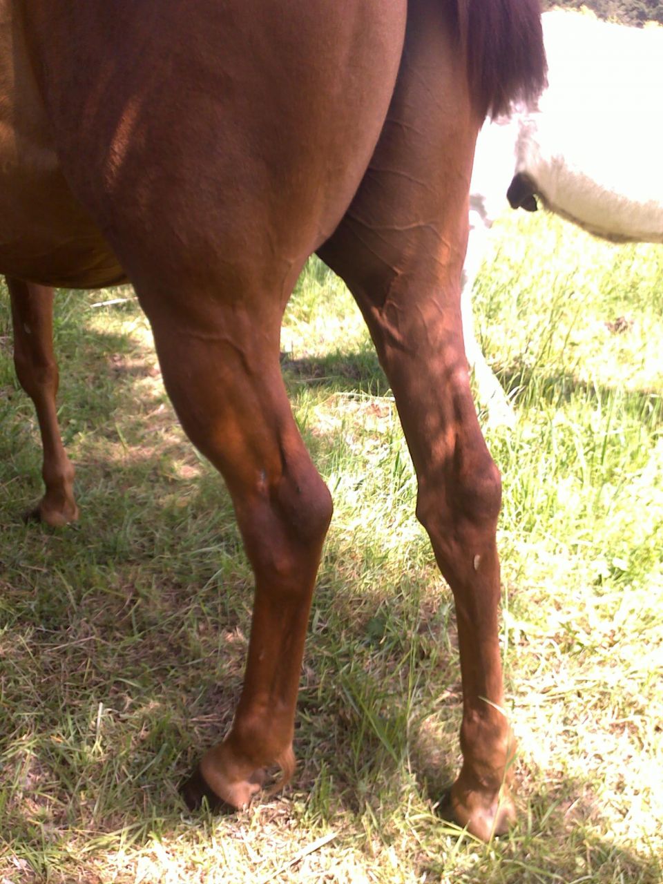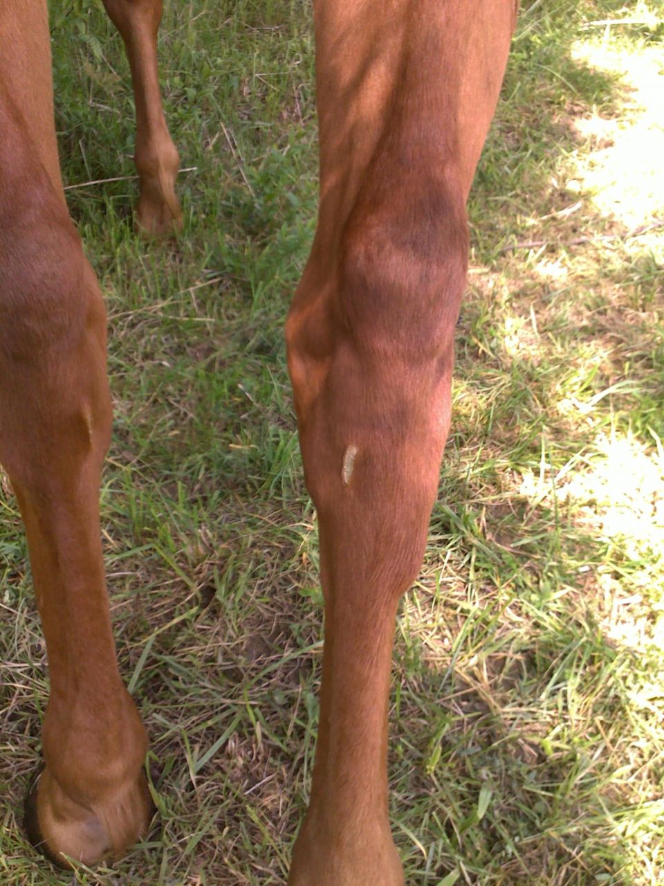Dire merci | sur le PD c'est la châtaigne (sauf si tu parles d'une autre trace) et pour les autres, on dirait de petites plaies. Y aurait pas des chardons, des ronces, des morceaux de bois +/- au sol... dans la prairie où il pourrait se faire ce genre d'atteintes ?