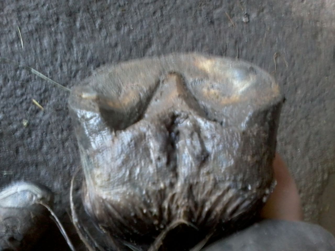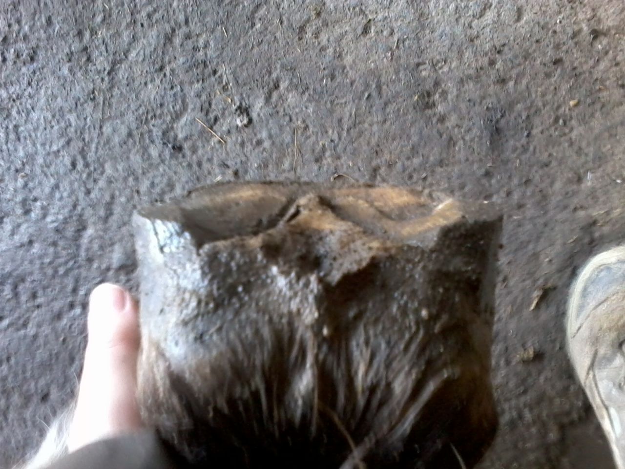 | Dire merci | Pour la fourbue, en plus de la différence de hauteur de talon pour l'antérieur droit, attention à la pourriture de la lacune médiane qui me parait déjà bien avancée Elle souffre pas de cet antérieur? |