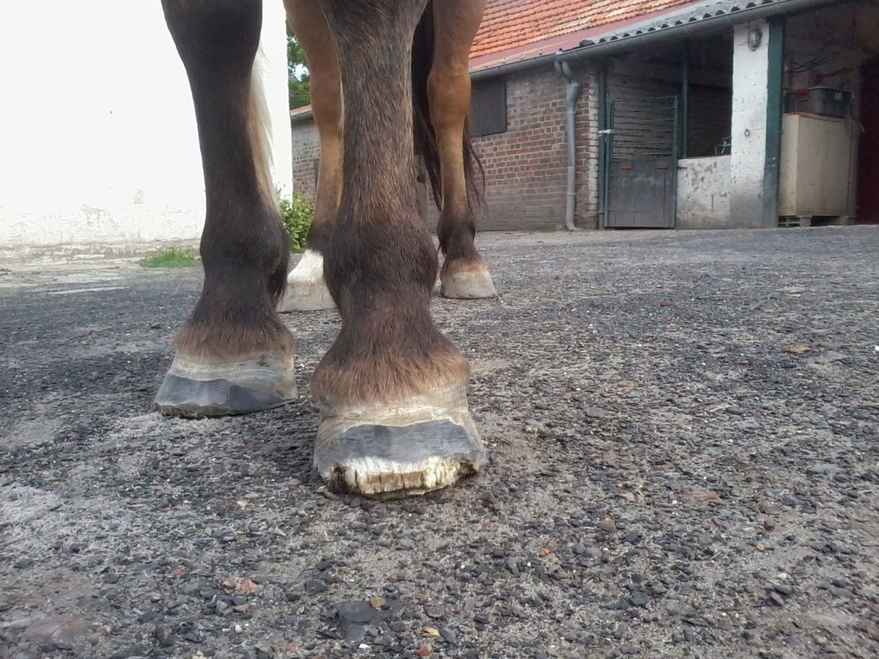 | Dire merci | Merci El Bimbo. ![]() Légère pourriture dans la ligne médiane ? Qu'est-ce qui te fait dire ça ? Je trouve la ligne médiane toujours sèche et nickel. Par contre il a de temps en temps de la pourriture dans les lacunes latérales qui sont bien profondes. La ligne blanche a tendance a être étirée en effet quand la paroi pousse bcp. D'ailleurs y 'a plein de gravillons qui se mettent dedans. Tu trouves la longueur de paroi correcte ? Je me demandais si c'était pas encore un peu long ? Sinon la corne est solide oui, surtout aux postérieurs où elle est noire, pour ces pieds là j'ai un mal dingue à râper ! Devant avec la corne blanche c'est bcp plus facile. Et question hauteur de talons, équilibre du pied, aplombs, ça va ? |