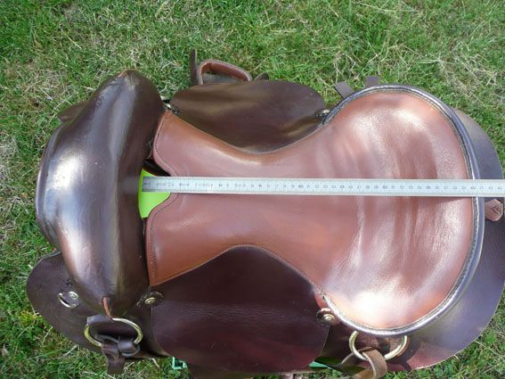 | Dire merci | J'ai la même à la maison et sans vouloir te faire peur, elle a été en vente très longtps (leboncoin et dépot vente en sellerie) mais n'est pas partie. Je l'ai acheté d'occasion en 2007 ou 2008. Par contre, ce n'est pas à la jument qu'elle convient pas mais à moi Et en effet, il n'y a aucune identification. La vendeuse m'a dit qu'elle venait d'un artisan du Sud mais je n'ai pas plus de précisions. Point de vue arçon, la mienne convient à ma demi-trait qui taille XL en arcade thorowgood/wintec |