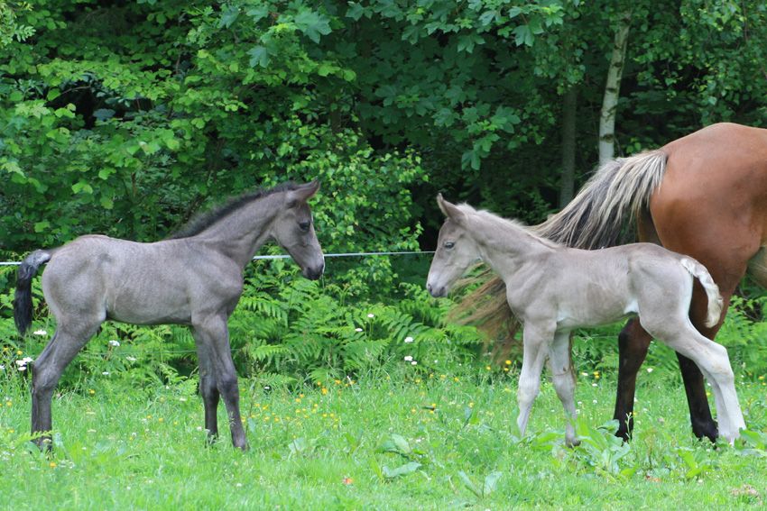 | Dire merci | tous nés (ouf !) avec une belle parité: 2 filles, 2 garçons...de la couleur et du tölt à vendre, sauf ma petite chocolat au biberon, tant qu'elle n'est pas sevrée: Assa, née le 4 mai, noire et tölt de show: https://www.1cheval.com/membre/services/photos/images/62397.jpg[/img] Alleluia, née le 1er juin,au biberon, adoptée par la ponette...: https://www.1cheval.com/membre/services/photos/images/64939.jpg[/img] Argentix (à G) et Averell (à D), né le 5 et 12 juin, bleu vs chocolat, super cools : https://www.1cheval.com/membre/services/photos/images/65020.jpg[/img] |