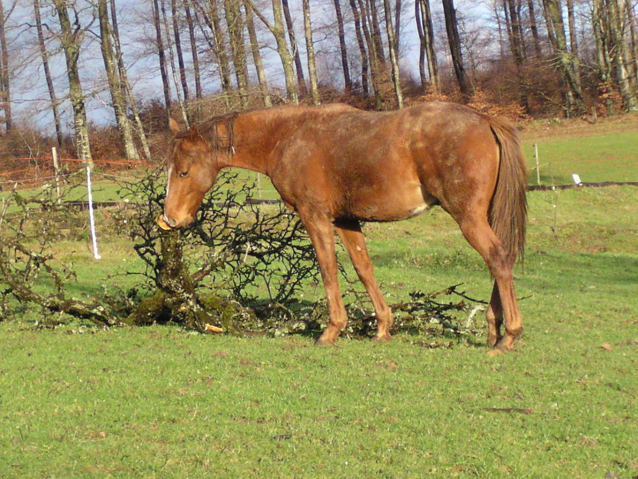 | Dire merci | Moi ma A , elle est vachement douée sur ses pieds , preuve en photos ça part bien ![]() et ... ![]() ![]() Sinon ![]() Sinon niveau boulot : pas grand chose : quelques balades en dextre , et du glandage au pré et quelques petites desensibilisations par ci par la : chambrière , longe ( celle pour longer ) ... Comme ça cet été on commence tranquillou la longe ( genre 10 min par ci par la , juste pour mettre au points les codes vocaux ) et l'hiver prochain la longe plus en profondeur pour débourrer le printemps d'après |