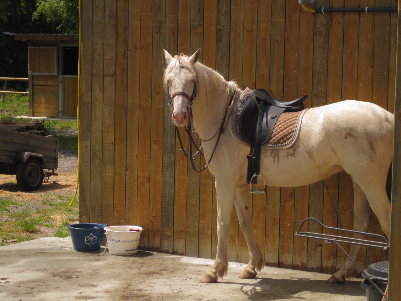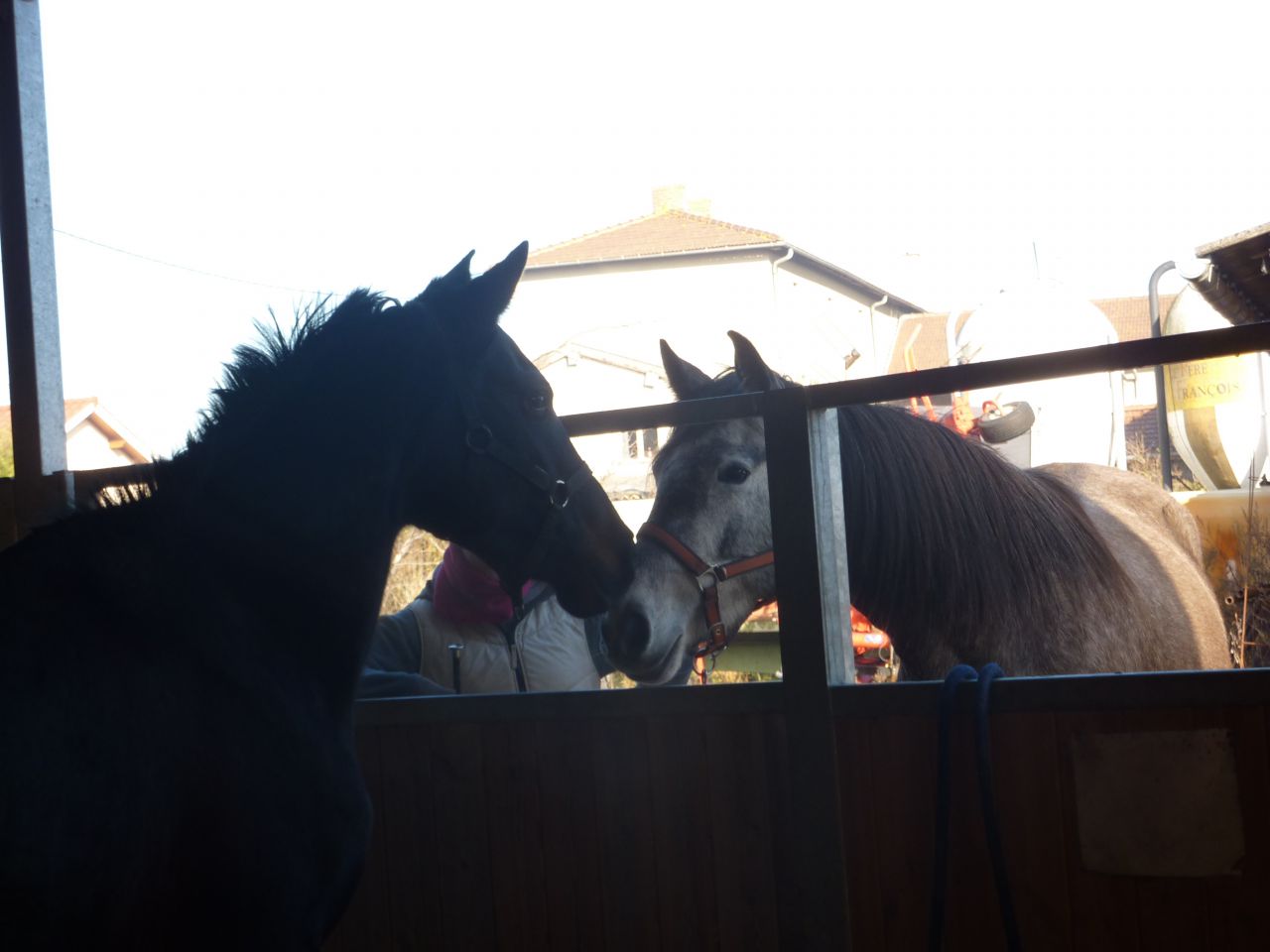 | Dire merci | Airoso dit Le Pignouf est à la maison depuis une semaine! Plein de nouvelles choses à mettre en place mais ca se fait gentiment. C'est a star des écuries tout le monde le trouve très beau et très sage. C'est vrai qu'il est étonnament sage, tant mieux!!!! Si il reste comme ca, aucune raison de lui enlever ses cougnettes. On a commencé son programme pour les competitions l'année prochaine, on va y aller tranquilles et à son rythme à lui. pour le moment c'est que du positif. ![]() ![]() |