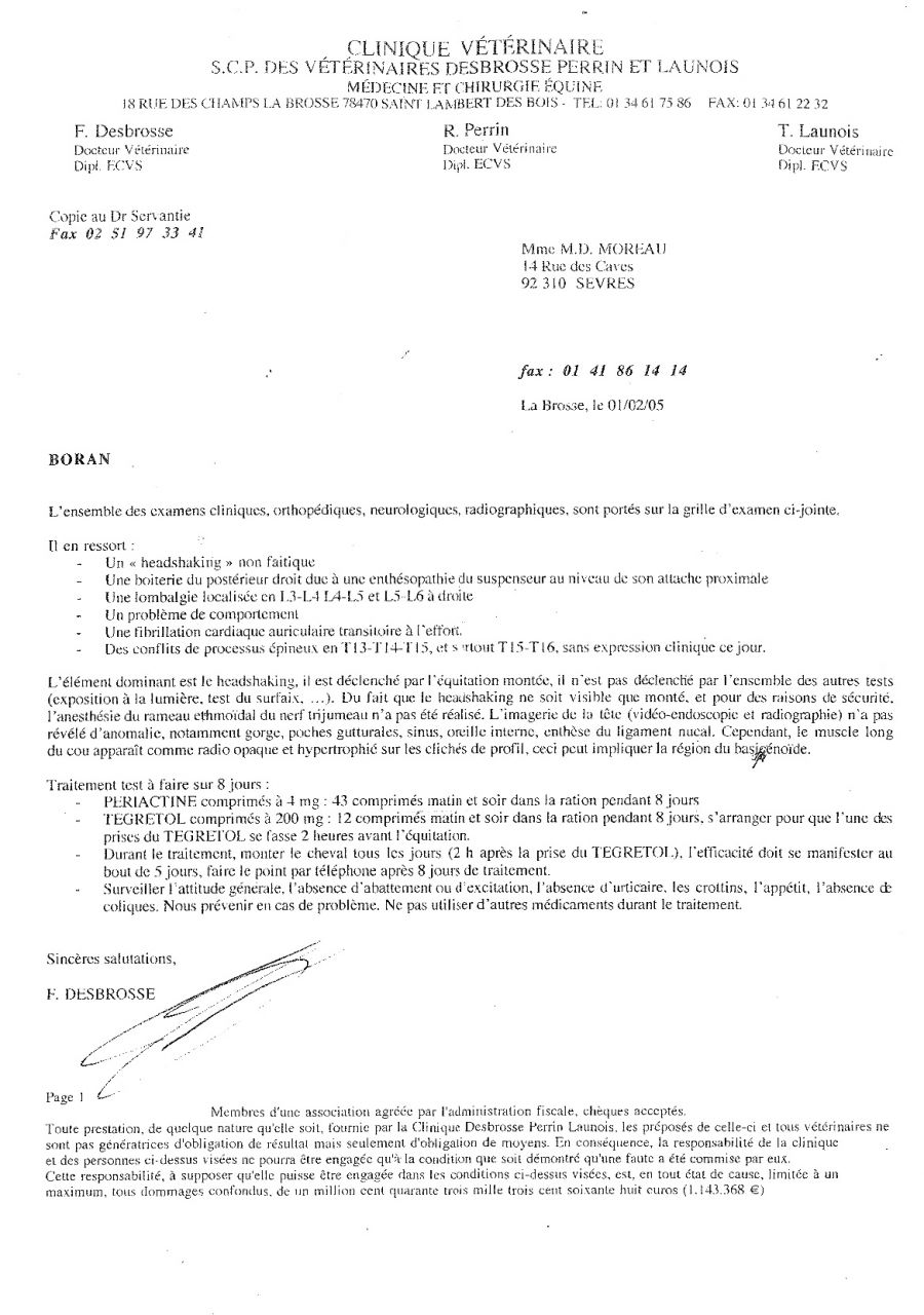 | Dire merci | Oui, c'est normal avec ce genre de traitement, pour Boran c'était sensiblement pareil, sauf qu'aucune manifestation Par contre, ça ne l'assommait pas et le calmait trèèèsss légèrement. Pour lui c'était également des médocs pour humain (une fortune) de la Périactine et du Tégrétol (l'un est un anti histaminique et l'autre pour les crises d'épilepsie). Voici l'ordonnance de l'époque : [url=https://www.1cheval.com/membre/services/photos/images/66188.jpg] ![]() Par contre le jour de l'examen, il n'était pas resté longtemps au soleil (surtout en février peu de soleil) et pour moi ce jour là il était montable car voyant des hommes autour de lui (très peur des hommes car maltraité par les hommes)... il se contenait tant qu'il pouvait. Heureusement j'avais donné un dvd de la vidéo le montrant monté + d'autres en longe. |
