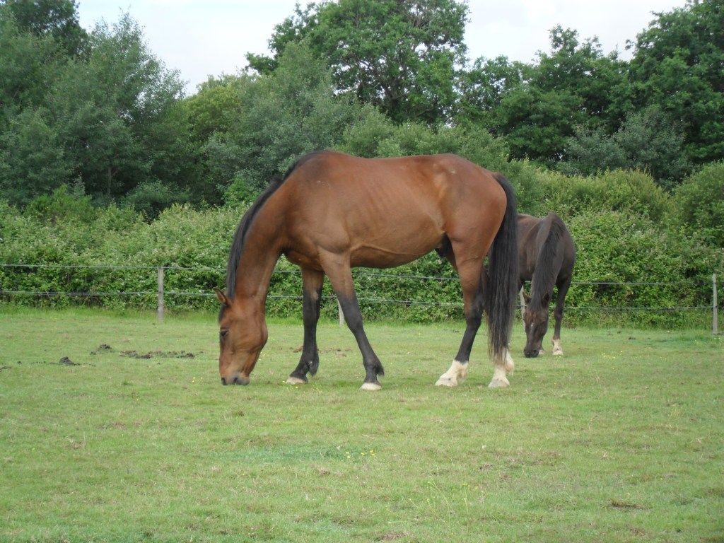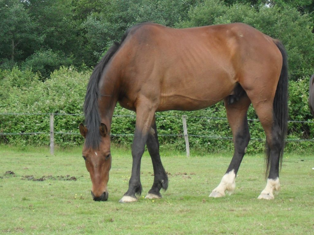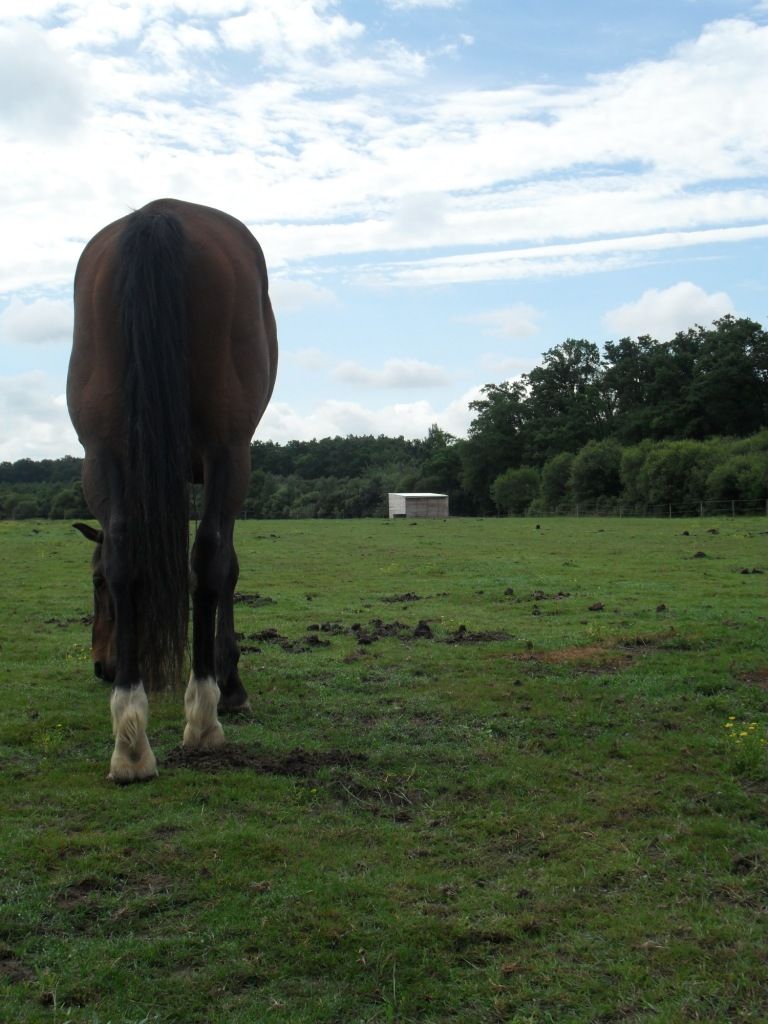 | Dire merci | C'est un trotteur, je précise, que je le monte 2 fois par mois environ Il est au pré toute la journée (comme vous voyez l'herbe n'est pas abondante) par contre il a un mélange de granulés matin et soir 2l à chaque repas. Moi non plus je ne le trouve pas spécialement maigre, effectivement comparé a lorsqu'il était en club ( 8l par jour de mélange) et un gros paquet de foin vers 15h qui lui durait jusqu'à 20h 21henviron. Par contre il était bossé tous les jours 1h. et je pense que sa morphologie actuelle vient surtout de ca |