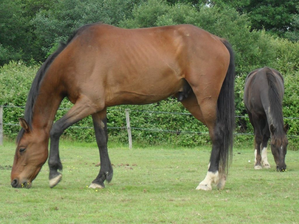 | Dire merci | On voit une grosse veine en bas du ventre, à ce qu'il paraît c'est un signe de bonne santé (un peu comme les poitrails larges)....vous confirmez ? Perso je trouve pas ce cheval maigre...mais en pleine santé. |