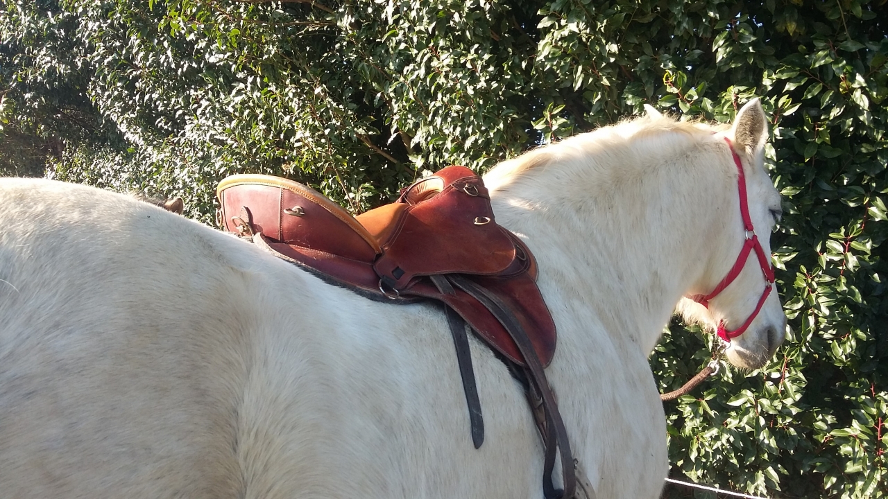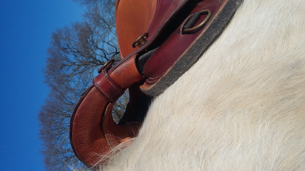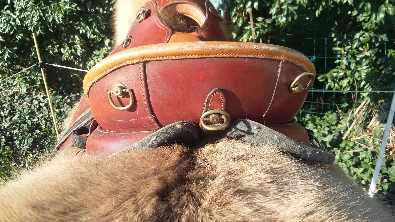 | Dire merci | Alors je l'ai essayée sans enlever les anneaux de devant qui en ont gêné certains et j'ai mis un tapis en feutre/neoprène épais dessous et ça a été nickel pour la balade hier. Comme ça mais avec un autre tapis ![]() Les étriers GM sont un plus dans le confort La première fois que j'ai essayé cette selle (il y a très longtemps) j'avais une très mauvaise position de jambe...Un peu comme "le cul dans la brouette"...En corrigeant ce défaut qui ne va absolument pas pour cette selle,je me retrouve bien a l'aise dessus maintenant, jambes droites et bien verticales! |