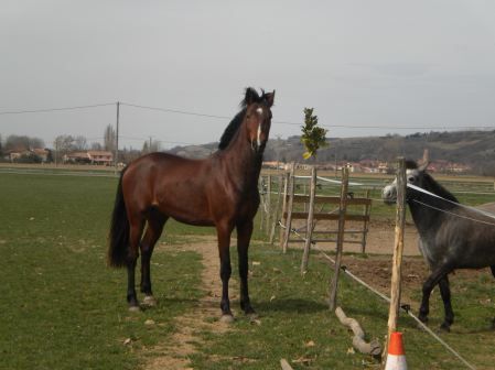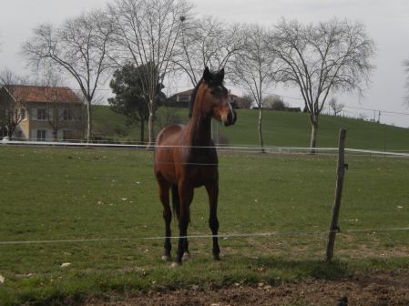 | Dire merci | Encolure attachée bas, semble manquer d'arrière main par rapport à l'avant, le dos à l'air bon. Globalement pour un trotteur je le trouve pas mal (pas par rapport aux critères de la race mais par rapport aux trotteurs que j'ai connu j'aime bien, ya plus de rondeur). |