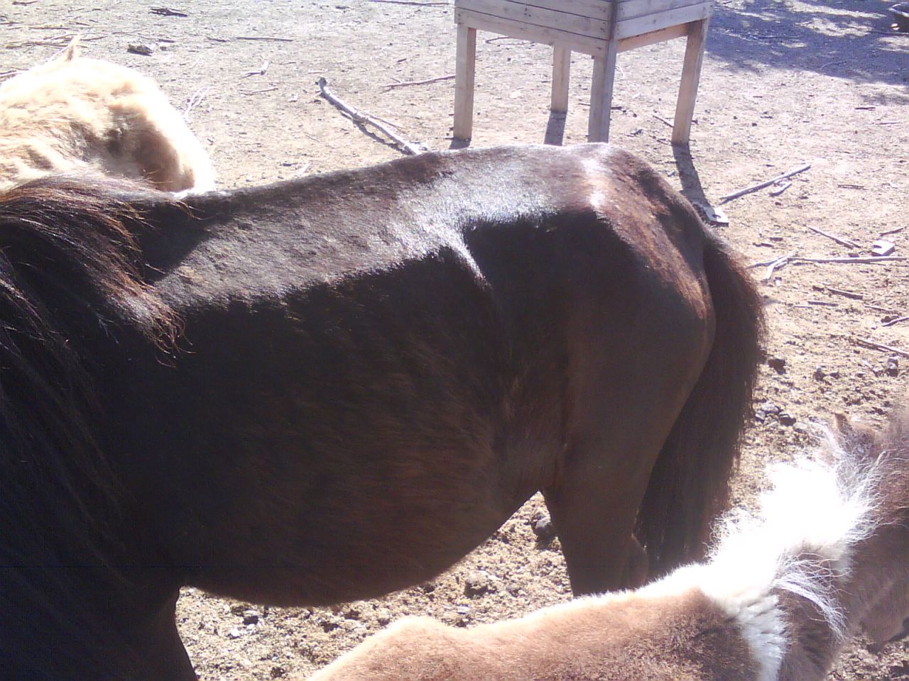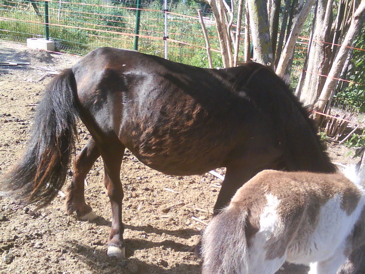 | Bonjour, J'ai une voisine qui a 3 poney shetland. Ils sont dans un drôle d'état..... je ne veux pas m'avancer ils ont peut-être une maladie ou autres mais je les trouves très maigres..... En plus la ponette est très panarde et elle faire des poulain à la suite et j'ai remarque son fils qui est avec elle(=le ponette c'est la noir et son fils le beige) est du coup pannard aussi..... je pense aussi que le dernier qu'elle vient d'avoir va l'être. Alors ma question est: est-il normale qu'ils soient aussi maigres? et n'y a t-il pas un risque de faire pouliner une ponette aussi panarde?