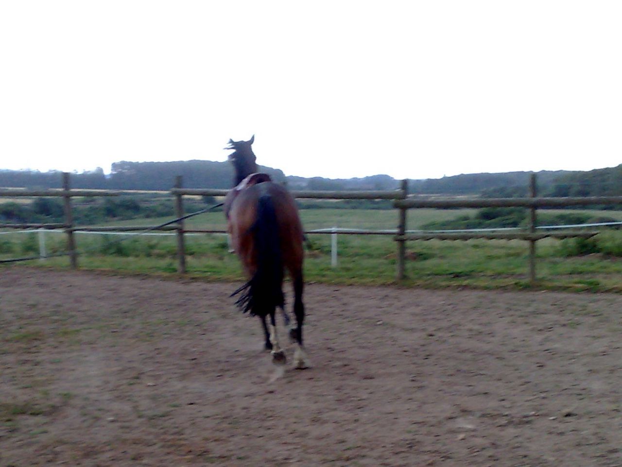 DéconnectéDire merci | SDE, je crois que c'est la pointe de la hanche que l'on voit particulièrement parce qu'il se tient mal et qu'il manque de muscle.. Nath, j'ai longtemps pensé comme toi. Mais le fait est qu'il y a trop de chevaux. Si tu achètes un trotteur, tu n'achètes pas un autre gentil cheval spécialement éduqué et sélectionné pour faire un bon cheval de loisir et qui, peut-être à cause de la faillite ou juste du dépit de son éleveur, vas finir à la boucherie à la place de ce trotteur. Il y a effectivement pas mal de trotteurs en club, des purs-sang, j'ai moins remarqué. Autant de chevaux crispés, contractés, à l'envers et donc en souffrance, alors que des chevaux au physique plus facile auraient parfaitement supporter le travail ingrat du club... Je ne dis pas qu'il ne faut pas acheter des réformés de course ! Mais je regrette que des amateurs de petits niveaux en achète, que les clubs les utilisent sans travail préparatoire pour faire la meule etc... Alors que d'autre chevaux plus faciles sont aussi disponibles. |
