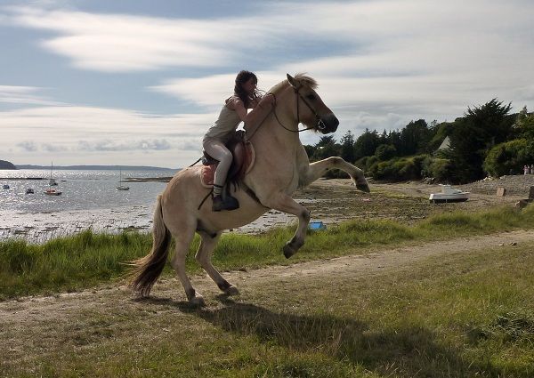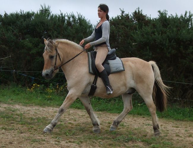 | Dire merci | moi j'ai un fjord de 5 ans que j'ai depuis ces 2 ans et je dois dire que pour rien au monde je changerais, il est super gentil même si il garde un bon caractere de poneyje fais de tout avec, dressage ou nous commençon s a travaillé les deplacement lateraux, et changement de pied qu'il comprend plutot bien, on fait aussi des saut il enchaine 60/70cm, nous faison aussi du cross et d'ailleur il adore sa, ba bien sur la balade o ula ces que du bonheur il passe partout, peut être en tete comme derriere n'a peur de rien bref en gros c'est renes longue toute la balade, il y a peu nous avons aussi essayé la voltige et puis impecable un poney calme aux ordres et dans quelques temps j'envisage de le mettre a l'attelage donc voila en gros c'est un poney qui peut faire de tout |
