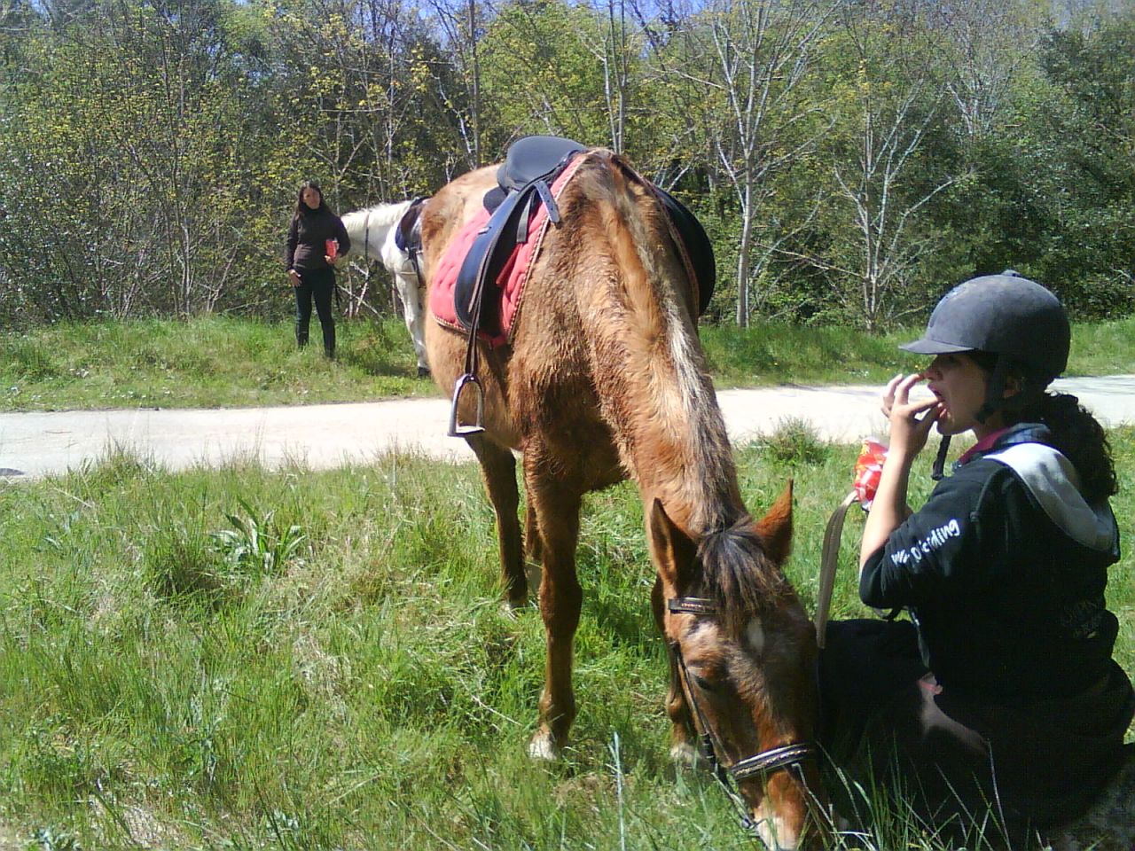 Déconnecté | un ami a tenu son cheval pour faire sa pause pipi, ben le cheval en a profité pour pisser en meme temps que son proprio (comique à voir, on a pris un sacré fou rire) pour la pause de midi, il nous arrive de tenir les chevaux mais une fois le repas fini, pour qu'il puissent brouter à nos cotés, le hic avec certains c'est que ca fini souvent avec les jambes des poilu sur nos genoux ou nos serviettes et j'en passe donc tenir son cheval pendant 2h, et manger, c'est pas possible, on peut pas se reposer, on se fatigue plus à tenir et à repousser le cheval quand il vient trop pret, et le cheval ne se repose pas lui non plus |