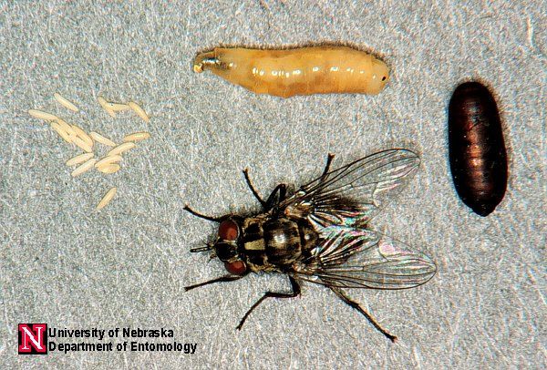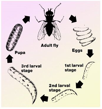 | Dire merci | Une photo des différents stades de cette mouche :![]() Et un schéma de son cycle ![]() Donc voilà, je ne suis pas véto mais l'idée des larves primaires de mouches ne me semble donc pas à exclure comme vous auriez été tenté de le faire, mais plutôt une piste à suivre... |