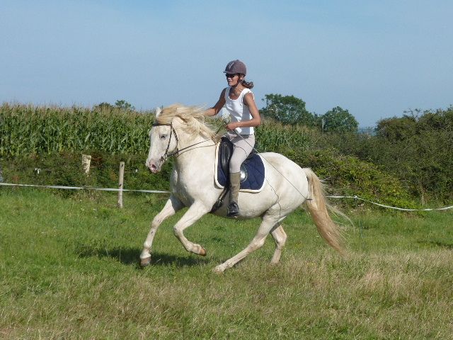 | Dire merci | Moi j'ai 26 ans, je vis au fin fond de la campagne près de Rennes. J'ai commencé à monter depuis toute petite sur le cheval de trait de mon pépé, et un tout petit peu plus tard j'ai tanné mes parents pour faire du poney Du coup à 9ans ils m'ont inscrit à un camp poney l'été et à la rentrée ils ont fini par m'inscrire aux cours !! Je suis resté dans le même centre équestre depuis tout ce temps.J'aime pas trop la compet' mais j'aime bien le CSO. J'ai fais plusieurs randos et quelques voyages à cheval :Mongolie, Géorgie et il y a 2 ans j'ai passé un an en Argentine avec mon chéri à parcourir la pampa avec 4 chevaux dont un qu'on a débourré sur place Et là depuis un an j'ai ma Doudoune rien qu'a moi , le loulou de mon homme qu'il a vu naitre, depuis une semaine un poney de 18 mois à nous 2 et une jument de 25 ans dont on s'occupe ! Voilà le troupeau !! Ce que je préfère : rester dans le champ à les regarder vivre.Sinon question niveau j'ai le G7 mais je crois que j'ai plus appris sur les chevaux en 1 an de voyage qu'en 17 ans de club... Voili voilou! |