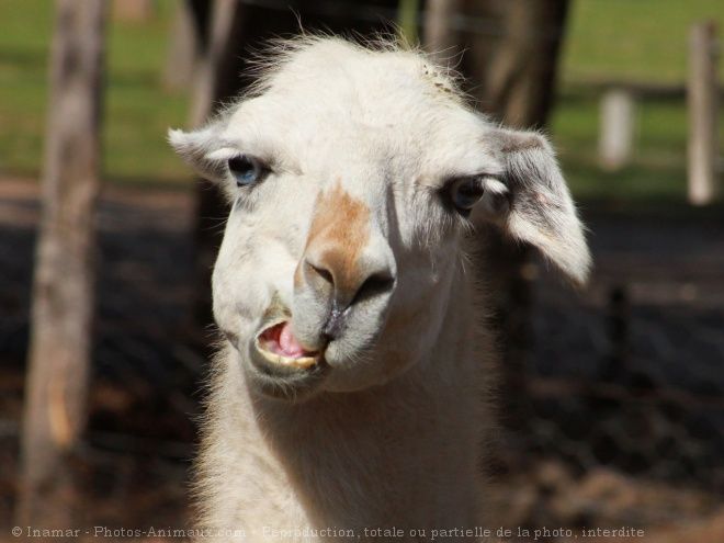 | Dire merci | Oui oui il est né comme ça ... Bah c'est ce que je disais plus haut, que c'est triste, si il vit avec d'autres lamas, il doit essayer de les suivre, et doit pas trop piger pourquoi eux ils bougent ... |