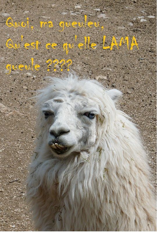 | Dire merci | Bon par contre ce qui est triste, c'est que c'est un vrai lama .... c'est pas un montage, je vois vraiment pas l'intérêt de le garder en vie, il doit pas être très heureux ... ![]() |