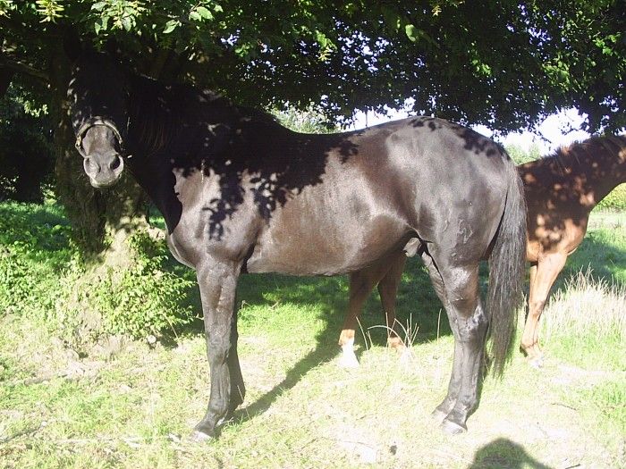 | Dire merci | Alors moi aussi, je veux bien une petite estimation: Kelly: 12 ans Trait du Nord (PP) * OI (surement trotteur) Très polyvalente Dressage: Basse école: en apprentissage de l'appuyer, et maitrise les bases Obstacle: A reprendre mais enchaine sur 70 cm et en isolé 1m10. Extérieur: Aucun soucis, passe partout, n'a peur de rien, part seule ou accompagnée. Elle est juste un peu vive en hiver! A déjà fait des concours de dressage, endurance et trec (elle a été très bien classé en TREC) A l'habitude de la tonte, de la mer, elle vit aussi bien en pâture qu'en box Elle est très gentille, à l'écoute, calme mais avec beaucoup de caractère. Elle ne convient pas du tout à un débutant. ![]() ![]() ![]() [url=http://sphotos.ak.fbcdn.net/hphotos-ak-snc3/hs055.snc3/14262_213672322347_664457347_2969913_6497716_n.jpg][img]http://sphotos.ak.fbcdn.net/hphotos-ak-snc3/hs055.snc3/14262_213672322347_664457347_2969913_6497716_n.jpg" alt="" /> ![]() Désolée pour la qualité médiocre, mais c'est juste pour montrer qu'elle saute ![]() Et voilà, mais elle n'est pas du tout à vendre. ![]() |