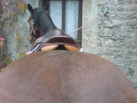 | Dire merci | Voilà sanglé : eclair : si je monte dessus, je passe toujours mes doigts entre le garrot et la selle, ya rien qui touche, même avec le tapis Les photos : ![]() ![]() ça fait gros cul sur celle là!! ![]() [/url] |