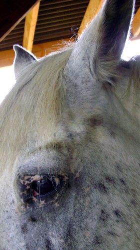 | Dire merci | Bonjour ma jument a le coin des deux yeux (là où normalement chez les humains c'est blanc) qui est rempli de brun. il parait que ça pourrait denoter d'une maladie du systeme digestif qui pourrait faire boiter le cheval. Avez-vous entendu parler de ça ? merci fin 2009 : il etait blanc (tiens j'ai toujours cru qu'il etait brun!) ![]() et la imaginez la partie blanche toute brune |