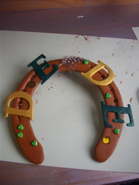 DéconnectéDire merci | Un ptit up pour ce post, car j'ai retrouvé la photo du porte-courrier que mon papa m'a fait, avec les fers de ma jument ! Ils ne sont pas peints mais polis, pour être aussi brillants ![]() ![]() On voit pas bien mais c'est gravé "Jasmine" au lazer devant... |
