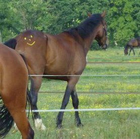 | Dire merci | Si tu veux j't'en passe 4 des trucs à peinturlurer mais ils font pas de spectacles, enfin, seulement entre eux D'ailleurs j'avais déjà tenté le tag de mérens à l'alu-spray, proprio indigne que je suis ![]() Par contre l'aluspray, ça risque de salir tout ce qui touche le cheval, au cas ou vous comptiez le monter ou quoi ![]() |