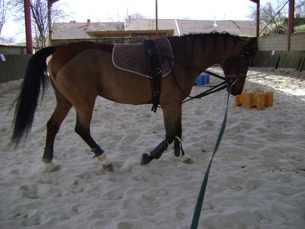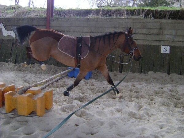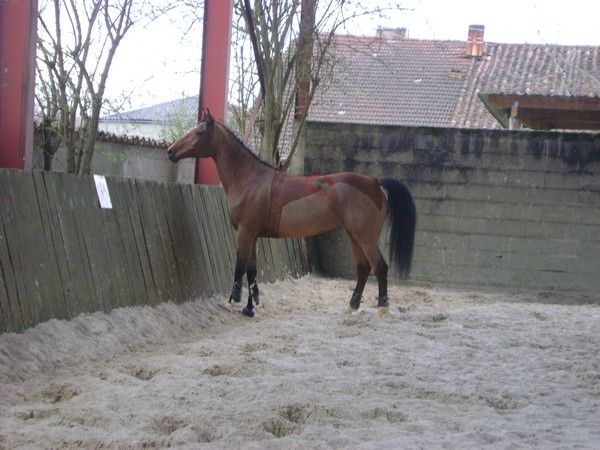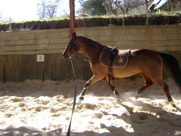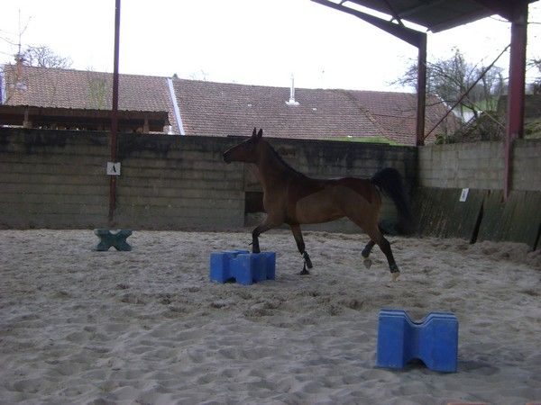 | Dire merci | Allez quelques photos de la grosse aujourd’hui Petite séance de longe car trop de vent pour sortir l’hystérique en balade… Echauffement ![]() travail en enrenement, hé oui faut bien bosser un peu ![]() du petit saut pour s’amuser, admirez le style ( j’ai fait plus haut mais pas facile de conduire la jument et de la prendre en photo en meme temps) ![]() puis j’ai laché la bete, et oui c’est bien une arabe ![]() c’est par où la sortie ?? ![]() entouré en rouge la tache qu’elle s’est dépoilée hier… |
