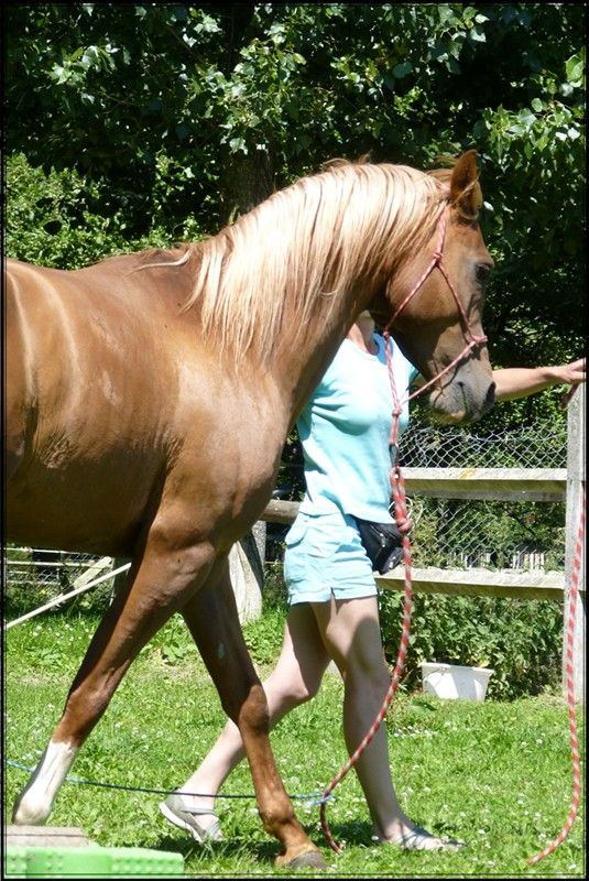 | Dire merci | j'avoue j'ai pas regardé de près tout mais il n'a pas de paturon plus laxe sur aucun des pieds.... pas de déviation spectaculaire....rien de spécialement handicapant, sain quoi.![]() |