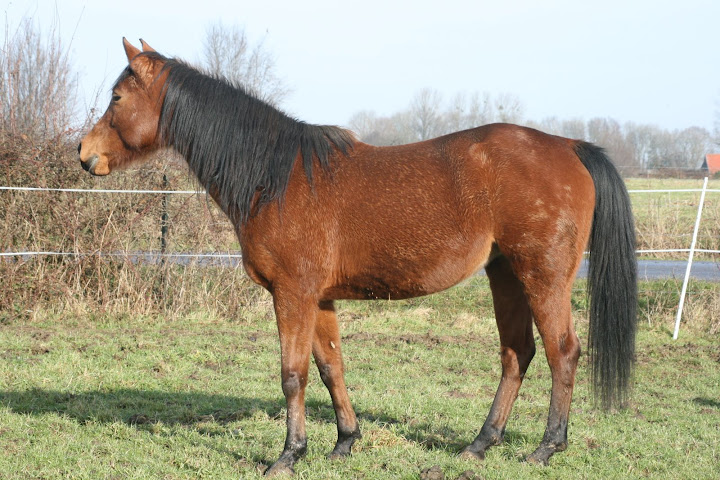 | Dire merci | Bon je trouve pas de photos en entier de profil du mien ![]() Mais la on voit son ventre, il est loin d'être aussi gonflé que celui du tien, pourtant, il est quand même trop gras (sur les flancs ça se sent bien) ![]() Il est pas complémenté, il est qu'à l'herbe, c'est un poney x mérens à tendances à embonpoints , et pourtant, il n'a pas du tout un ventre comme Hiall |