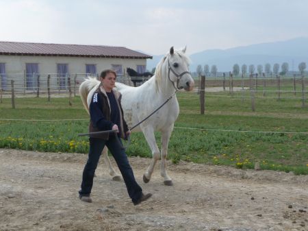 DéconnectéDire merci | Ophe : le problème, vu son tempérament méfiant, c'est que ton poulain n'est pas approché par suffisemment de monde. Tu es devenue son humain de substitution à son modèle équin (la mère), et du coup il ne fait confiance qu'à toi. C'est assez courant et normal je pense, mais il faut que ça lui passe, et pour ça, il faut qu'il voit un max de monde. Vol a mis du temps avant de se laisser approcher par quiconque. Il y a deux mois, en mon absence, le maréchal ne l'attrapait pas... dans son box ! Aujourd'hui, il vient vers tout le monde. Je pense que ça relève du même type de sociabilisation que celle que l'on pratique avec le chiot. Sauf qu'on va pas chez les gens avec son poulain en main !!!! Donc, une piste intéressante (un peu plus chère mais qui portera très rapidemnet ses fruits), c'est de faire venir un comportementaliste pour deux ou trois séances, qui le désensibilisera en douceur à tous les contacts, et notamment en lui passant les longes dans les membres. Vol a fait d'énormes progrès après ça. ![]() |
