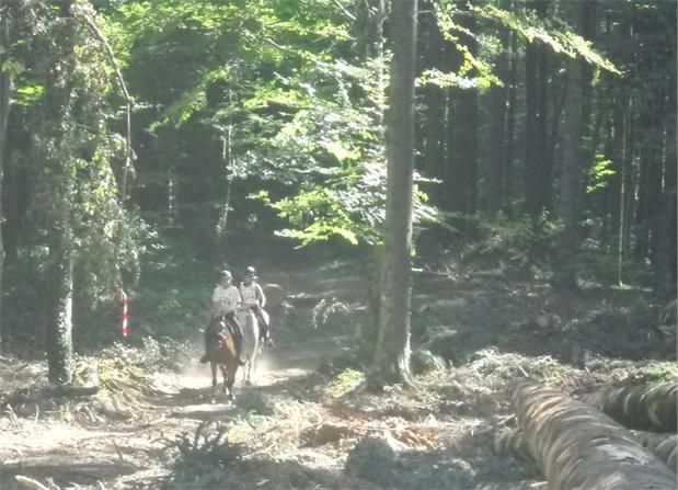 | Dire merci | Le dimanche : petite virée en catégorie club avec ma fille qui sortait avec la jument qu'elle travaille à la maison. Elle a du mérite, ma môme, cette jument est gentille mais elle n'est pas facile... Départ ![]() Parcours très technique, bon dénivelé mais excellente remontée progressive en sous bois sur une piste sablonneuse mais ferme : un régal ! ![]() Arrivée : ![]() |