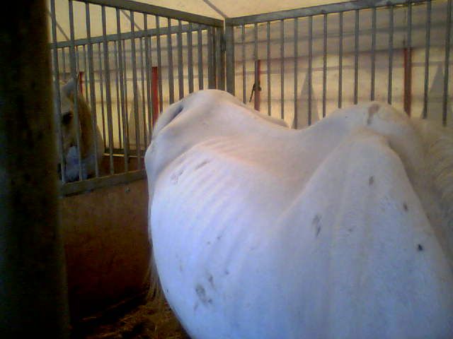 | Dire merci | Par contre ma louloutte est ronde comme une barique (on dirait pas une jument d'endurance), là où kawit à l'air d'avoir une belle ligne ! Vous faites comment pour que vos arabes ne gonflent pas à vue d'oeil ? Pour la mienne c'est l'horreur, si elle ne bosse pas 4 à 5 fois par semaine non seulement elle est speed mais en plus elle devient limite "obèse" Et pourtant à sa pension ils font gaffe aux rations, mais elle mange frénétiquement tout ce qu'elle peut trouver (foin, paille, herbe...) |