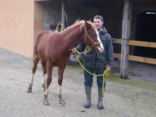 | Dire merci | j'espere qu'il restera blond!! mais en vrai il est pas aussi clair que sur la photo mais il blodit bien. Il est sabino ( une belle tache blanche sur l'epaule caché par le poil d'hiver) alors ça me laisse une chance Vous donnez quoi à manger à vos poulains en ce moment??? |