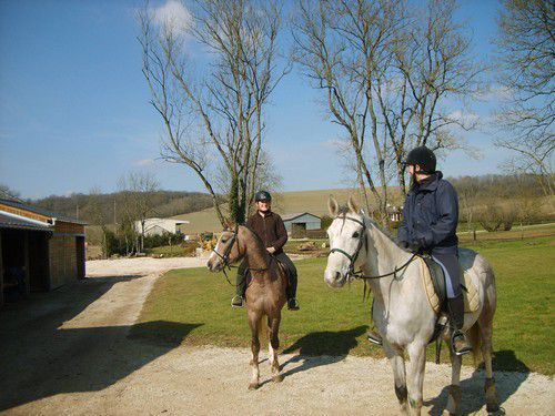 | Dire merci | Mince pour Vol![]() ici grand soleil et balade de 2h tranquilou avec les gris. Ma voisine s'entend super bien avec Nemal et se fait plaisir avec. Elle va le monter regulièrement et le travaillera en cours de dressage dès que la carrière sera finie ( vu que sa jument est de + en + incontrolable meme avec une cavalière pro, elle abandonne et va la faire pouliner, du coup elle se retrouve à pied). Chevaux très agréables, tjrs aussi surprise du comportement de Nabil, calme, tjrs devant avec des allures il est tout elastique souple et avec une enorme amplitude et un fort engagement.![]() et avec la carière en construction en arrière plan ![]() |