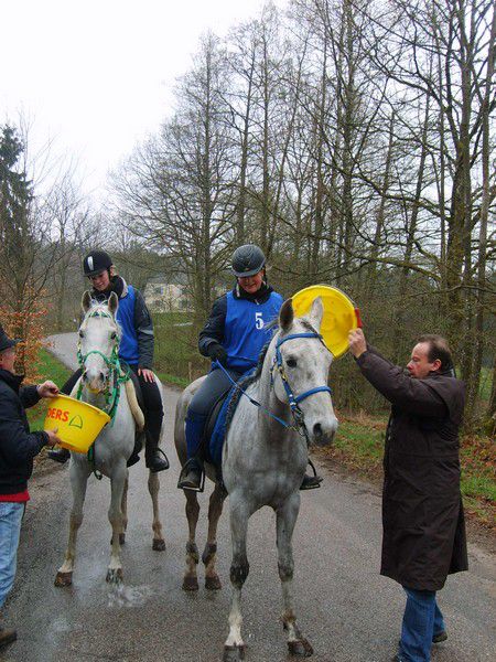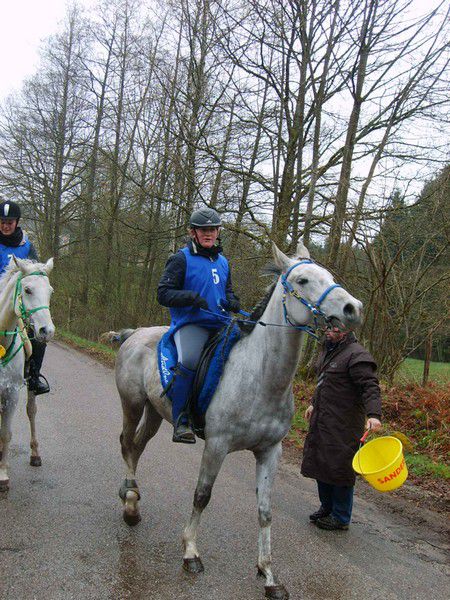| Dire merci | de retour d'un course géniale pour moi!!! trop fière de Nemal!!! qui remporte la 2eme place sur 90vi à 16km/h et 47 de cardiaque. Malgré le dénivellé très important et la qualité des terrains moyenne il était tout le temps devant, allant, j'ai jamais poussé ( j'ai beaucoup retenu ) une très bonne recup aux intermédiaires et un cardiaque final assez bon.Le cheval ets en forme ce soir, bien content de retrouver son troupeau!!!!! Niemen prend la 4eme place ( il a eu un coup de froid au vet final et donc un cardiaque élevé), sa cavalière est donc qualifiée. |