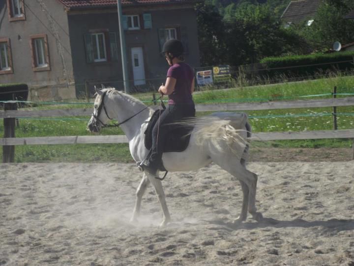 | Dire merci | Sinon petites news vite fait de Tilak. On en est à notre 5° cours en club et tenez-vous bien, j'ai un PSAR qui tend à passer derrière la main en s'enfermant trop ou qui parfois me tracte vers... le bas ! Ca me change sacrément de Griotte "miss tête en l'air" ! Du coup on surveille ça et il donne des choses intéressantes ce petit cheval. Mais je déteste quand momentanément il plonge vers le bas, il est sur les épaules, me déséquilibre et souvent trébuche dans la foulée. |