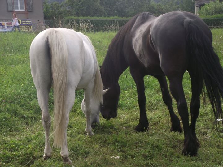 | Dire merci | Elbimbo : même les flaques ne marche plus elle reste propre ! un coup de brosse et zou ! oui l'herbe est très bonne tout comme le foin ! et ça repousse si vite qu'elle va pouvoir en profiter encore longtemps. loviatar: oui c'est vraiment ce qui lui convient, mais elle cherche tout de même le box pour les heures de siestes ( madame aime le confort ) mais elle ne le verra pas avant l'hiver. |