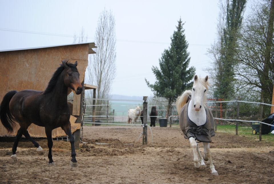 DéconnectéDire merci | Oui, c'était bien sympa cette rencontre, Wellan est un entier vraiment agréable et calme, j'ai encore du mal a croire qu'il y en a vraiment des comme ça ! Du coup, quand j'ai rentré les miens hier soir, la con.erie de Vol du soir n'est pas passée, il a pris une tarte ! Faut vraiment que je m'attelle à la tache avec lui...J'ai aussi découvert Kirikou - jamais vu en photos -, c'est une très belle jument, m'attendais pas à ça d'une trotteuse ! |