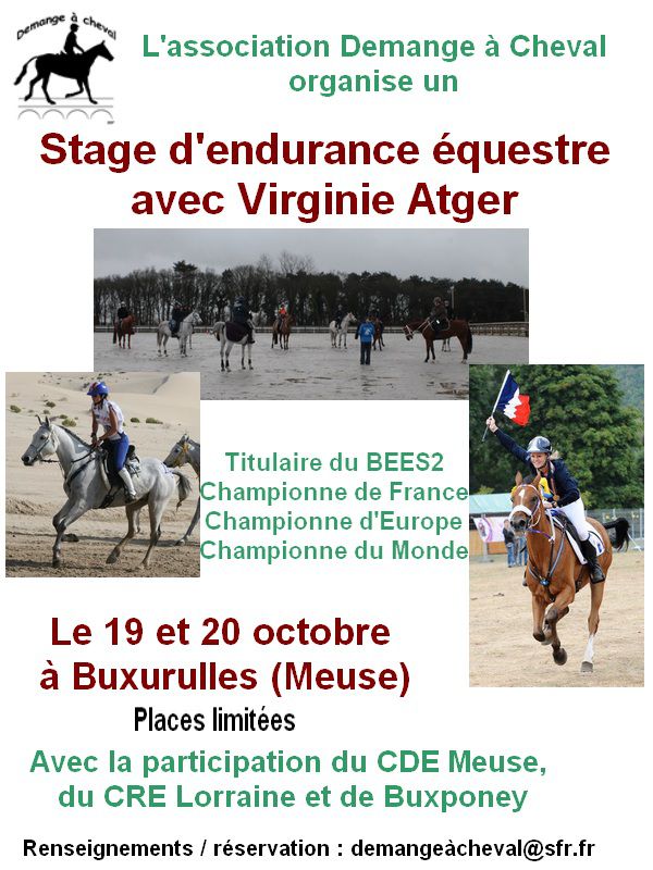 | Dire merci | le club chez qui le stage se deroulera ne fait que du CSO mais ils sont curieux de voir ce qu'on demande comme travail à un cheval d'endurance et très content de nous accueillir. |