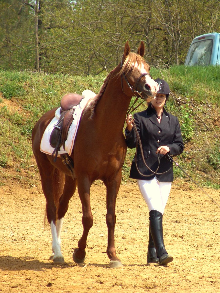 | Dire merci | Oui, Wellan est feignant et le stick de dressage étant interdit, Jackie a mis des éperons: Wellan à la présentation en main...j'ai du envoyer une bénévole pour pousser au trot (et il sait trotter en main) ![]() Bien sûr avec 4 autres entiers sur le terrain dont deux un peu tendus, la musique, et tout et tout ![]() ![]() |