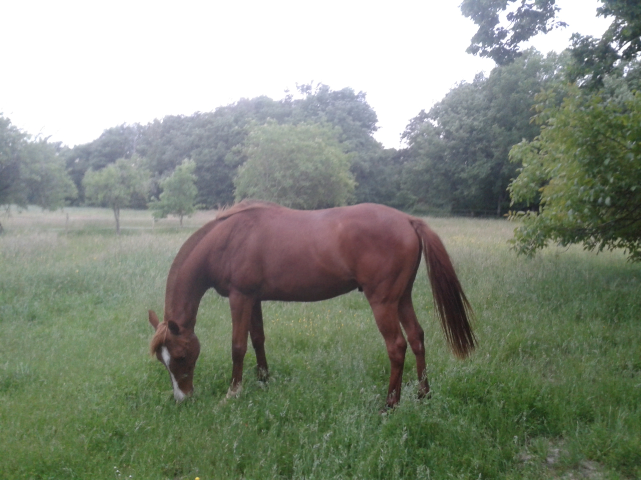 | Dire merci | Si, si! Mais je venais d e le sortir du pré par temps lourd et orageux , pré où il se goinfrait tranquillou; il avait envie de bouger, c'est fou! |