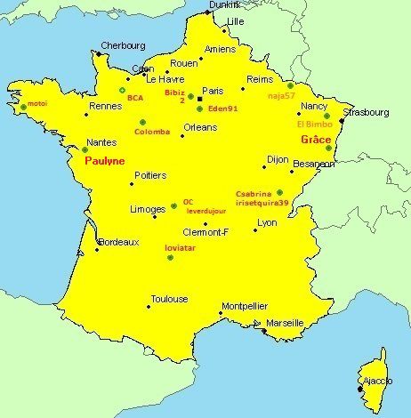 | Dire merci | Si, moi je suis en Bretagne ! Si une bonne âme peut m'ajouter sur la carte vers Quimper dans le finistere ? Merci ! |