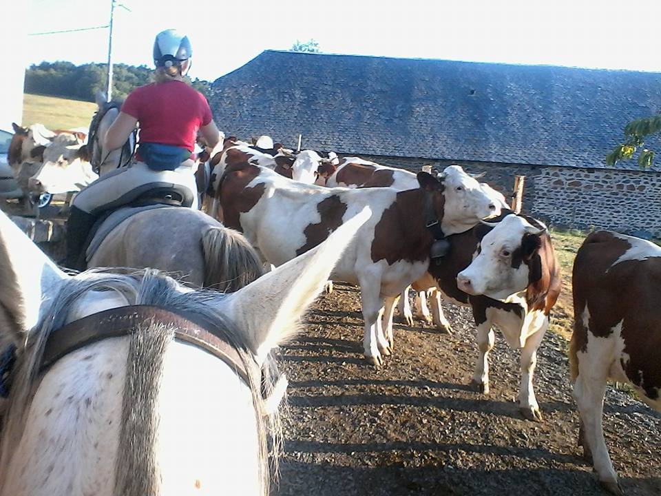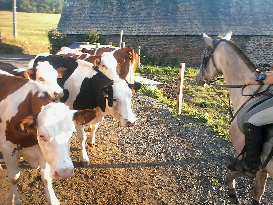 | Dire merci | Le soucis c'est que mesdames les vaches n'étaient pas pressées de rentrer de la traite, du coup elles ne se poussaient pas. Nabil aucun soucis, il voulait même mettre son nez dessus. Nemal était bloqué par les fesses à Nabil, il a fort paniqué quand les vaches à cloches sont passées à coté de lui, mais comme coincé par Nabil il a prit sur lui. J'ai finit par faire du rentre dedans avec mon gris pour qu'elles nous laissent passer. De toute façon ici c'est pas un pays de peureux les vaches viennent toutes au grand galop (avec ou sans cloches) car curieuses de voir des bêtes bizarres, et des vaches, ben il y en a partout ![]() |